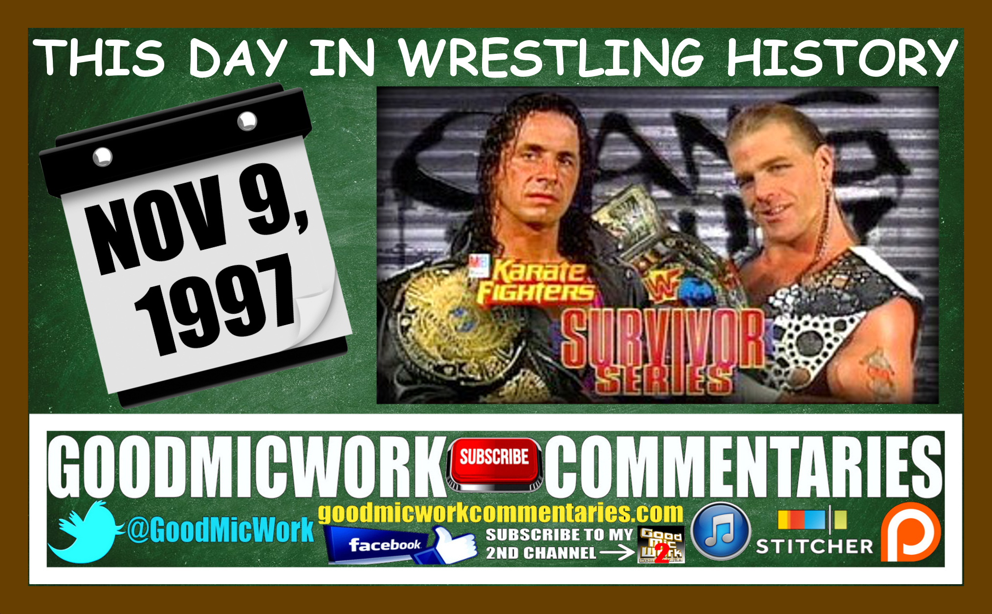 The Montreal Screwjob 20 Year Anniversary | Shawn Michaels vs Bret Hart | WWE Survivor Series 1997 November 9, 2017 goodmicwork http://traffic.libsyn.com/goodmicworkcommentaries/TDIH_SCREWJOB_PODCAST.mp3Podcast: Play in new window | DownloadSubscribe: RSS Podcast Episodes YouTube Videos